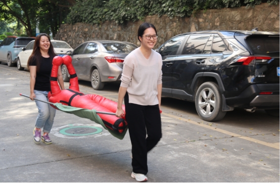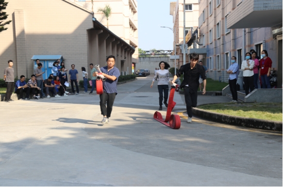 “警钟长鸣”项目中,,,,,,,,参赛队员拿到使命提醒卡后,,,,,,,,快速跑向报警处凭证使命卡提醒情形准确向评判员报警,,,,,,,,再由另一位队员接力准确衣着消防服,,,,,,,,最后凭证火灾类型提醒,,,,,,,,选择响应的灭火器对油桶举行灭火。。 。。。。。“快!快!穿上装备‘快跑’!”场外的员工也情不自禁主要地为同事们加油、喝彩。。 。。。。。